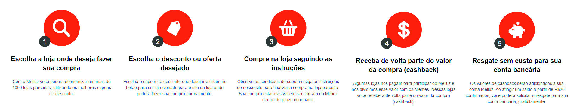 "Méliuz é um site de cupons de descontos e dinheiro de volta que permite aos membros registrados receberem, além de descontos, um reembolso de uma parte das suas compras online (cashback)."